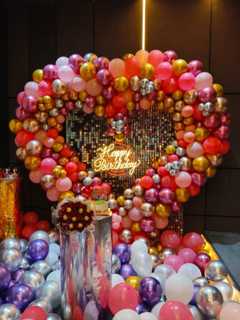 A romantic birthday surprise near me setup is ideal for celebrating your partner’s birthday in a private and beautiful way. Room decorations include heart-shaped balloons, LED name boards, soft lighting, and flower arrangements that create an emotional atmosphere. This type of birthday surprise near me works perfectly for midnight surprises where your loved one walks into a fully decorated room. The warm lighting and thoughtful design make the celebration intimate and memorable.